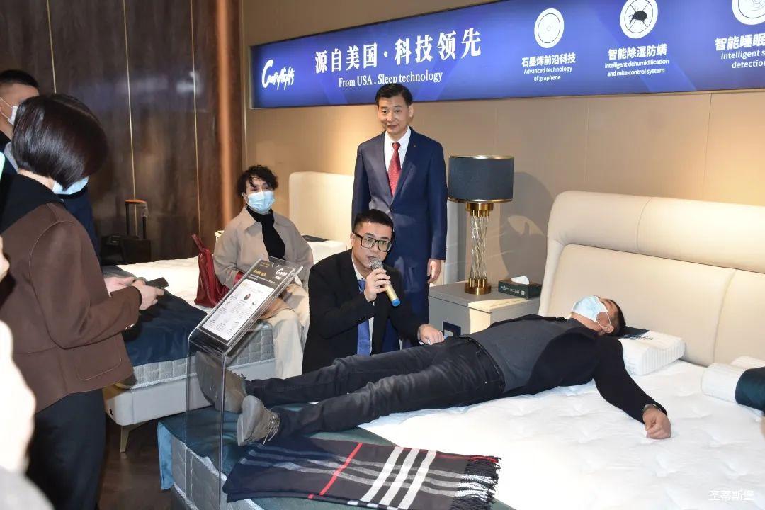 12月25日上午,按照发布会流程安排,参与发布会的嘉宾先到名家居世博园【梦凯莎】旗舰店进行了参观。上午9:45分,经销商嘉宾们陆续来到名家居世博园2楼——美国梦凯莎的展厅里,nangong28.com集团集团营销总经理陈玉伟先生带领梦凯莎杨讲师团队为嘉宾们讲解【梦凯莎床垫】新品系列的10种睡感体验及材质工艺,让嘉宾们从工艺特点,科技睡感上,实时体验【梦凯莎床垫】的独有特色。“一张好床垫,睡出好健康”,“梦凯莎”品牌以其卓尔不群的产品优势和为专为国人打造健康舒适睡眠的品牌理念赢得了在场经销商的一致好评。